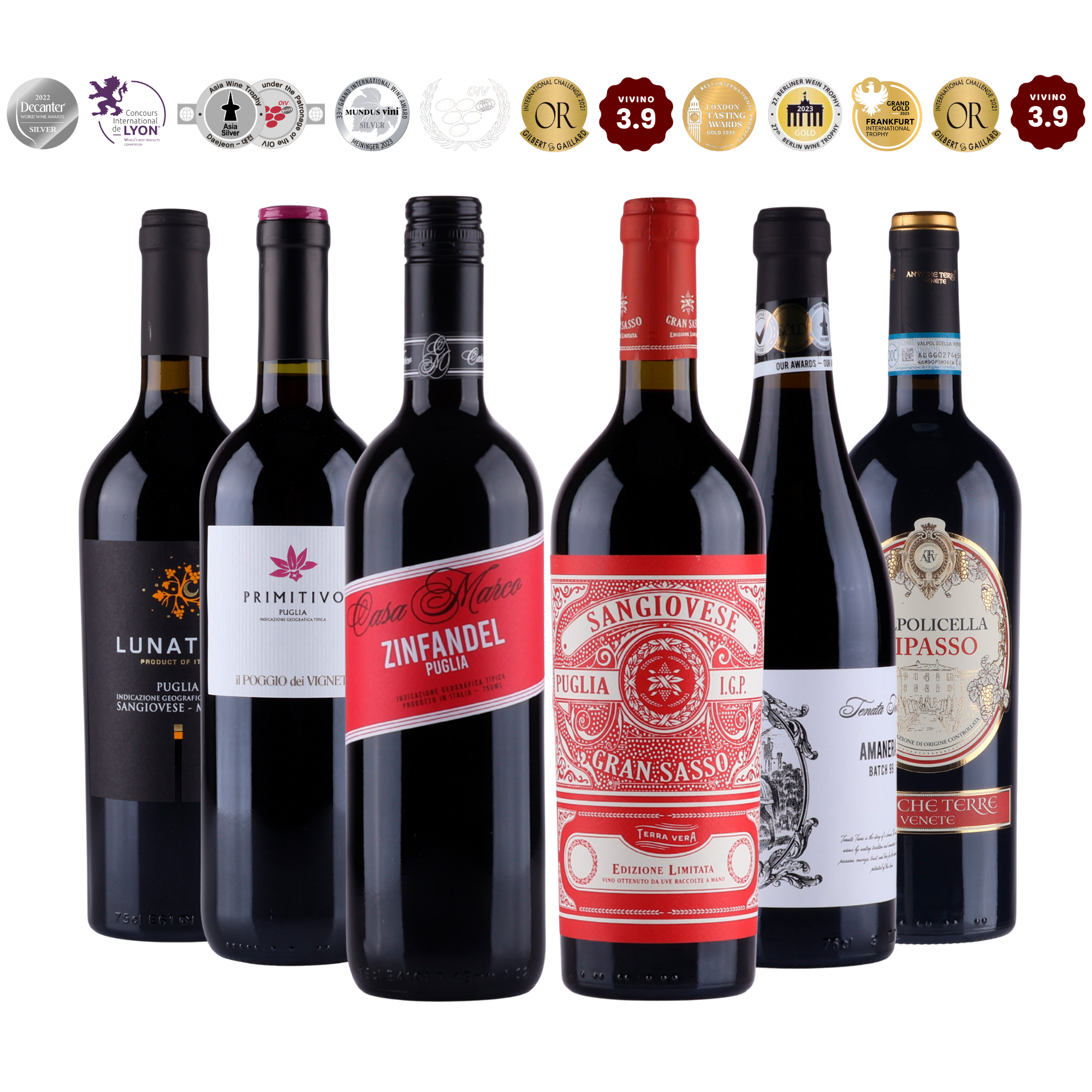 Koe italialainen punaviini parhaimmillaan tämän viinipaketin avulla, joka on täynnä voimakkaita, hedelmäisiä ja elegantteja viinejä. Harmoninen yhdistelmä syvyyttä, luonnetta ja palkittua laatua – täydellinen niin arki-illallisille ja viihtyisiin hetkiin, kuin erityisiin tilaisuuksiin.