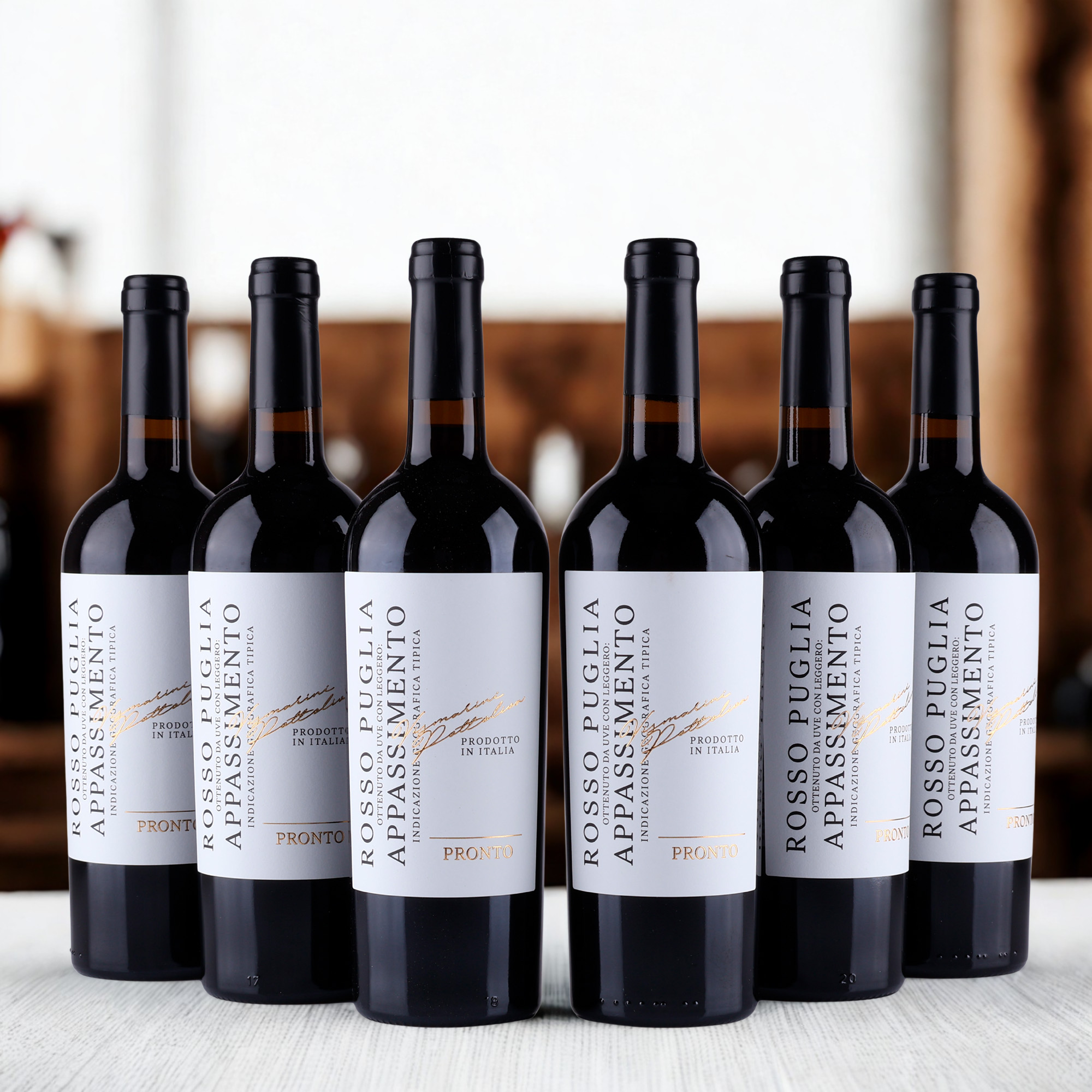 Pronto Rosso Puglia Appassimento on täyteläinen ja monivivahteinen viini Apuliasta, joka valmistetaan osittain kuivatusta rypäleestä. Viini on syvänpunainen ja maussa on kypsiä punaisia hedelmiä, kuten kirsikoita ja luumuja, sekä mausteiden ja vaniljan vivahteita. Sen rakenne on pehmeä, ja tanniinit antavat miellyttävän suuntuntuman.