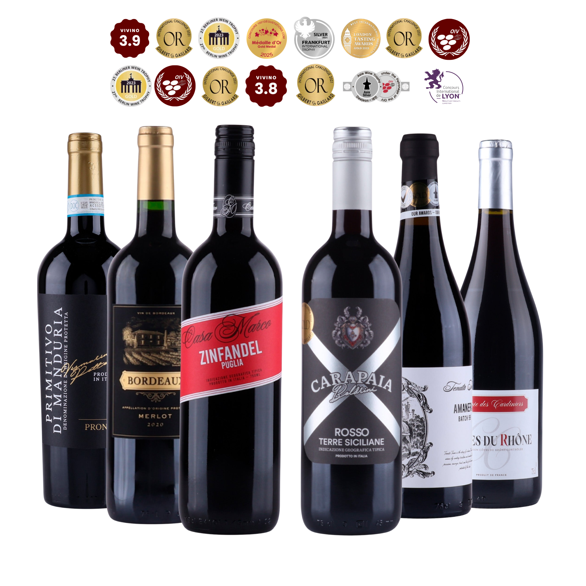 Lähde makumatkalle Euroopan kiinnostavimmille viinialueille. Tämä viinipaketti sisältää kuusi persoonallista punaviiniä, joissa on runsaasti hedelmäisyyttä, täyteläisyyttä ja mausteisia vivahteita.